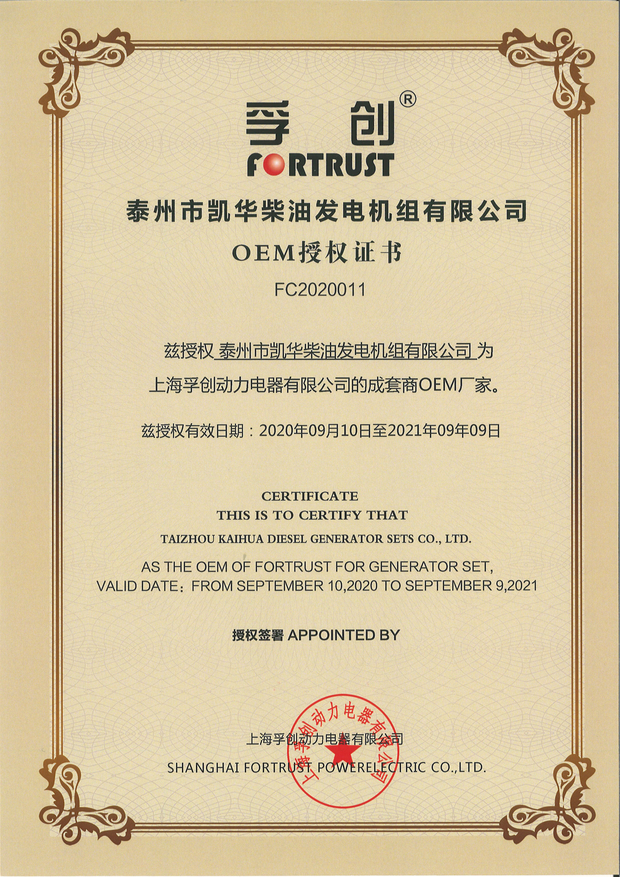 泰州市凱華柴油發(fā)電機組有限公司創(chuàng)建于2003年,是一家集柴油發(fā)電機組燃氣發(fā)電機組的研發(fā)、生產(chǎn)、銷售為一體的高新技術(shù)民營企業(yè),公司座落于“漢唐古郡,淮海名區(qū)”,具有“鳳凰城”美稱的祥泰之州——江蘇省泰州市,地處中國經(jīng)濟最發(fā)達的長三角經(jīng)濟圈,水陸空立體交通,地理位置十分優(yōu)越。公司目前注冊資本金11800萬元人民幣,生產(chǎn)基地占地六十畝,現(xiàn)有各類高素質(zhì)員工一百多名,專業(yè)技術(shù)人員達46人,其中高級技術(shù)人員16人,年銷售額近6億元。 公司主營產(chǎn)品:3~3000KW陸用柴油發(fā)電機組,15~600KW移動拖車電站,12~1000KW船用應(yīng)急柴油發(fā)電機組,各種靜音型、中高壓、多機并聯(lián)、燃氣等特種機組以及進口系列柴油發(fā)電機組,可滿足不同客戶的一切電力需求,還可滿足用戶不同電壓、不同頻率的要求。凱華公司是康明斯品牌的授權(quán)代理商,專業(yè)生產(chǎn)供應(yīng)康明斯柴油發(fā)電機組。